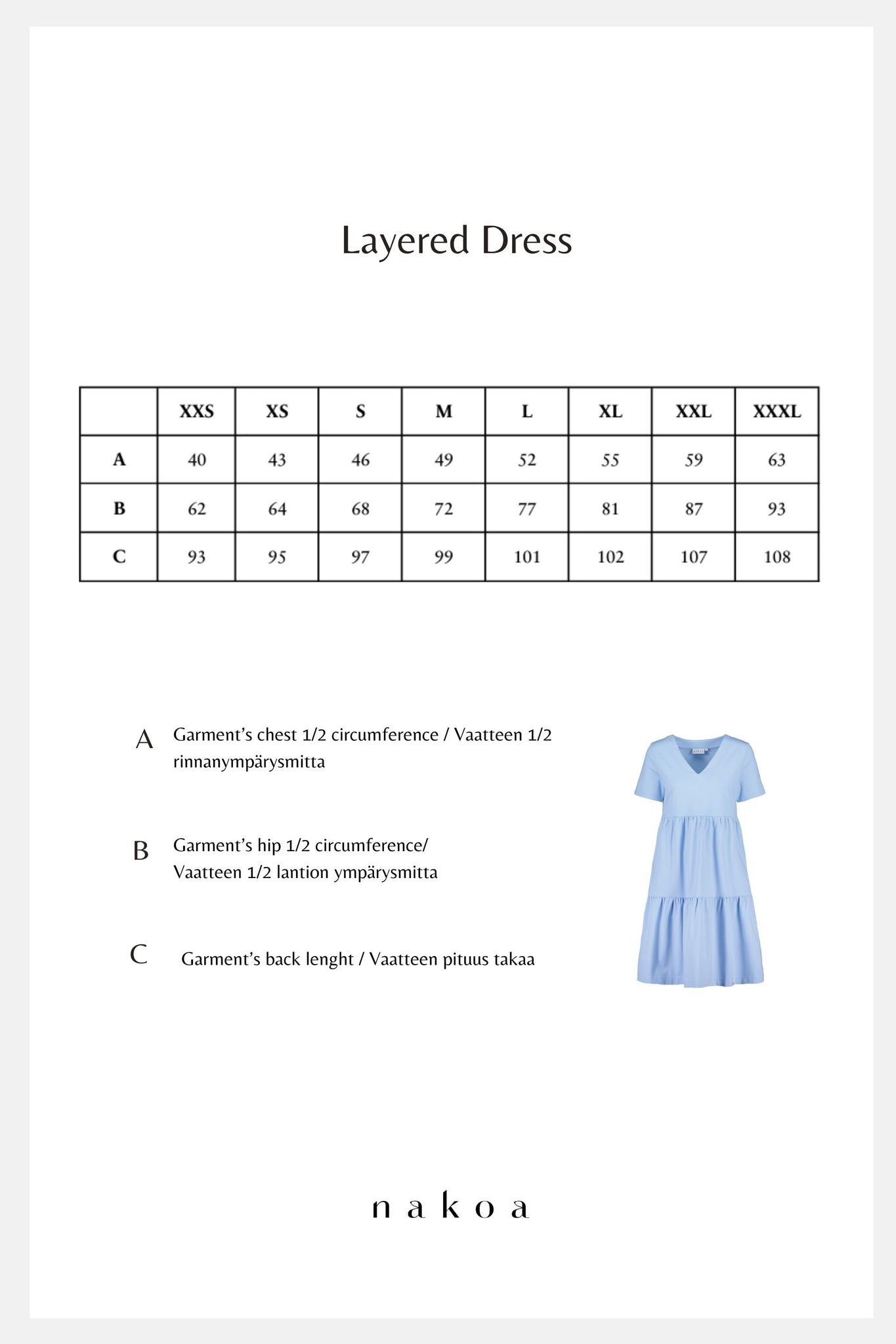 Merseroitu portugalilainen puuvilla on pehmeä ja laadukas materiaali, joka tuntuu ihoa vasten mukavan hengittävältä ja kevyeltä. Kerrokset toimivat viehättävänä yksityiskohtana ja luovat kauniin siluetin.