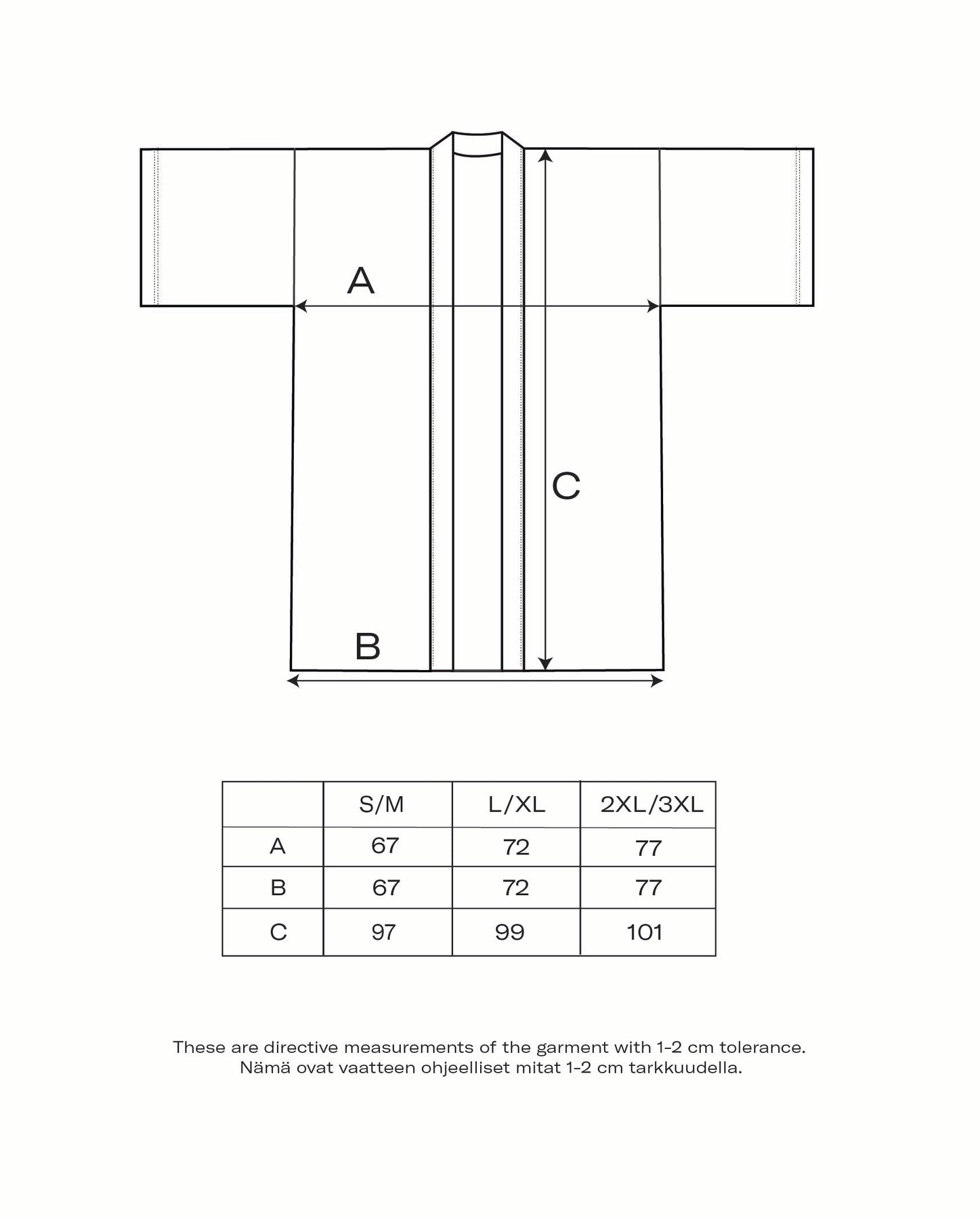 Ensimmäinen malli on 174 cm pitkä ja käyttää kokoa S/M. Toinen malli on 178 cm pitkä ja käyttää kokoa 2XL/3XL.
