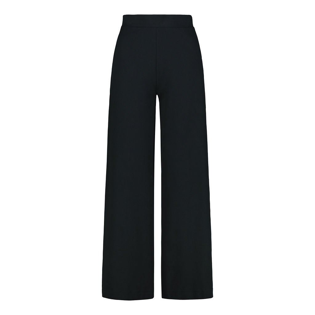 Housut on valmistettu laadukkaasta Ponte Roma -neuloksesta, joka joustaa kauniisti ja säilyttää ryhtinsä koko päivän. Korkea vyötärö ja kevyesti levenevät lahkeet tuovat modernia ilmettä, kun taas taskut ja kuminauha vyötärön takaosassa varmistavat käytännöllisyyden ja mukavuuden.