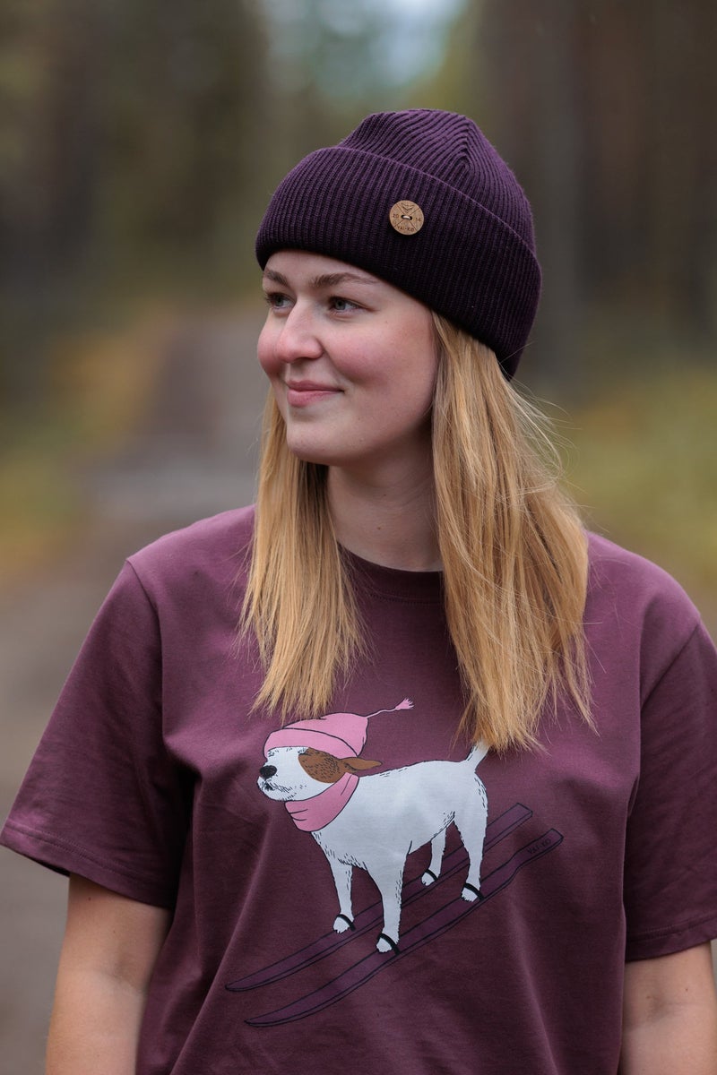 Vai-ko -merkin Ski Dog t-paita Aubergine sävyssä.