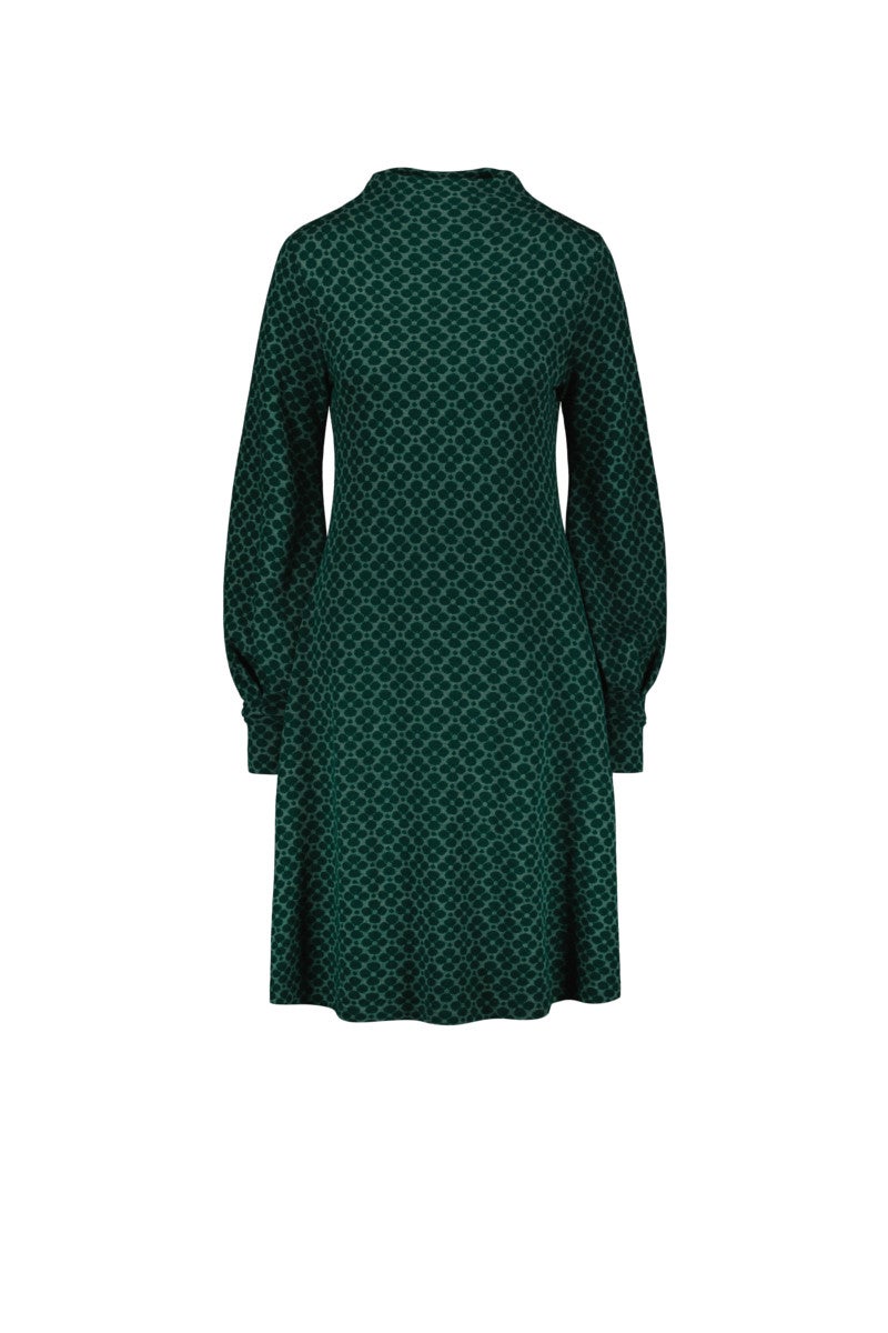 Upeasti muotoiltu matala savupiippukaulus ja viehkot pussihihat ovat tämän mekon juju.
