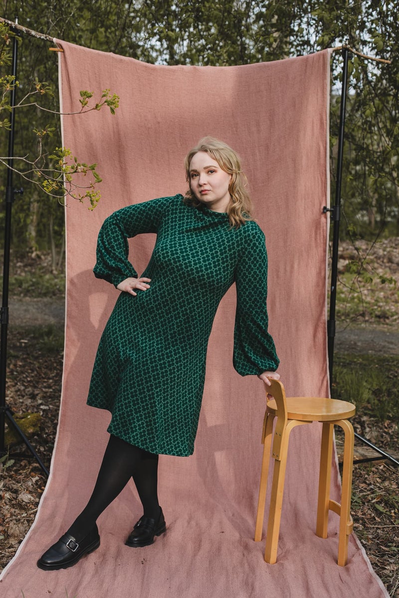 Merinovillainen Puffi on upea, mutta helppo jokapäivän mekko, jonka voit halutessasi pukea myös housujen kanssa. Hengittävän materiaalin ja kauniin leikkauksen ansiosta mekko toimii niin toimistossa kuin kotisohvallakin. Vartaloa myötäilevä, lievästi A-linjainen mekko on imarteleva jokaisen yllä!