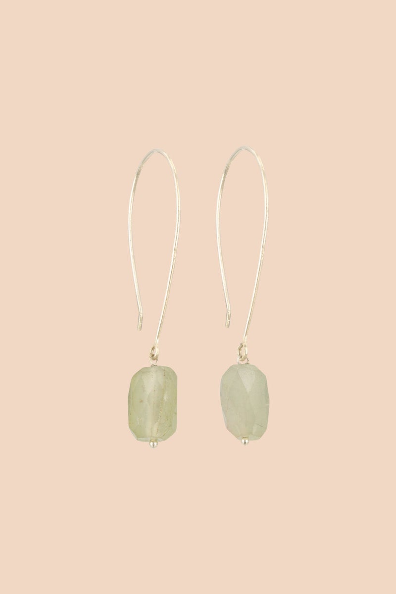 Herkkä ja elegantti korvakorupari, jossa pitkään hopeiseen koukkuun on ripustettu vaaleanvihreä Anguri Onyx -kivi. Kiven kauniisti vaihtelevat sävyt ja luonnollinen muoto tekevät jokaisesta parista uniikin.