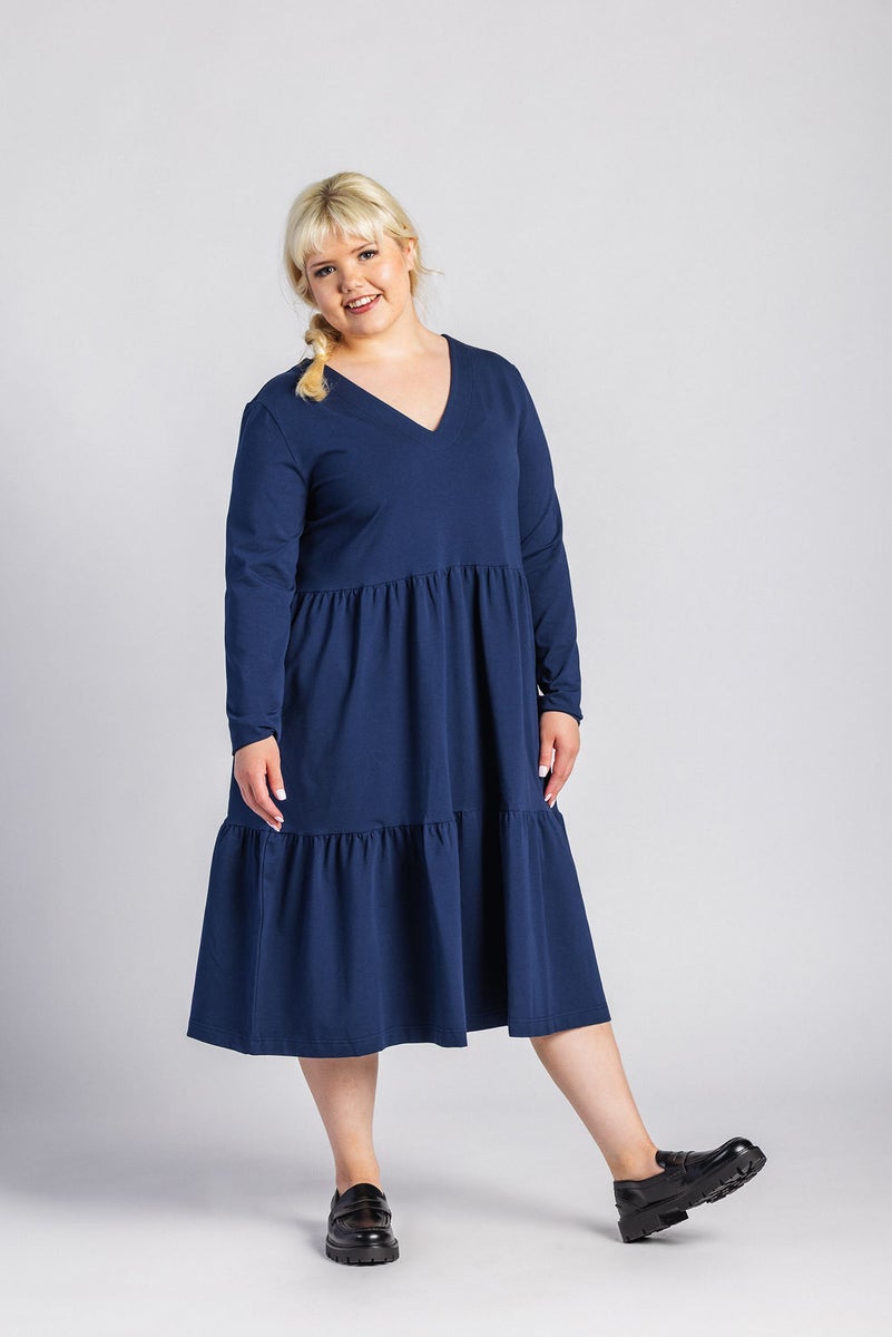 Nakoa -merkin Amelie kerrosmekko tummansinisenä.
