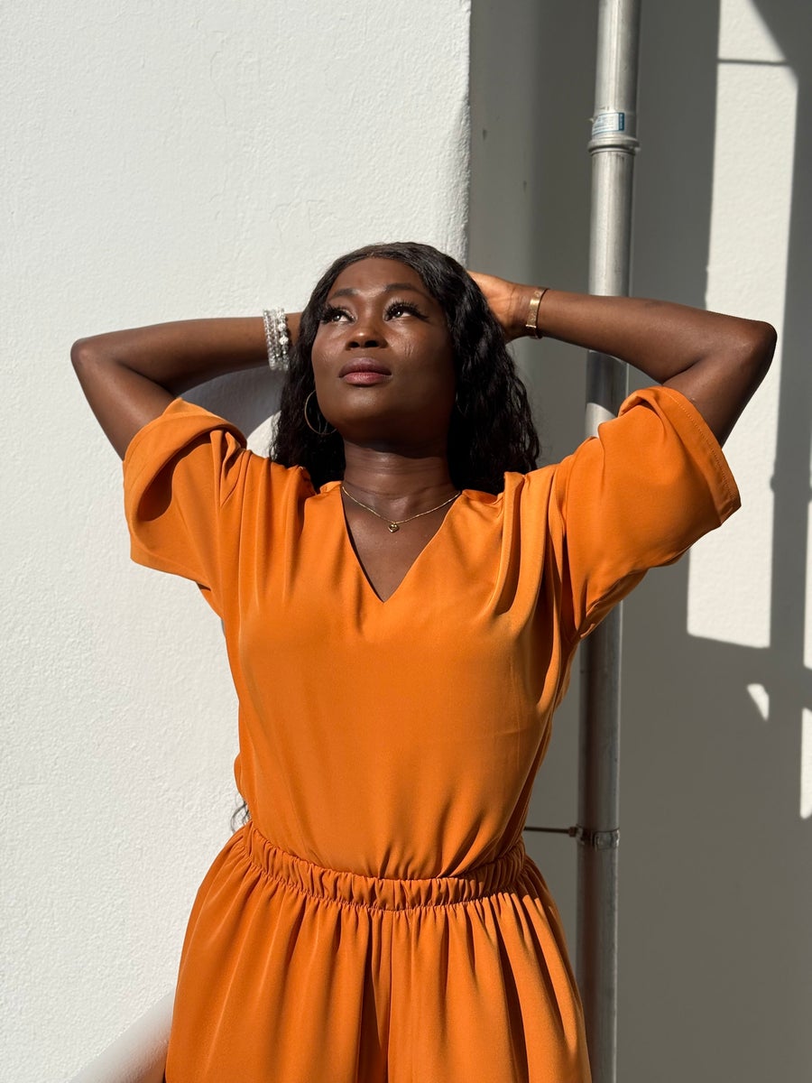 Kangas ei juurikaan rypisty joten pesun ja kuivumisen jälkeen voit huoletta pukea Beean yllesi ilman silitystä. Okran sävyinen materiaali on tunnultaan kuin kupro tai pehmeä viskoosi.