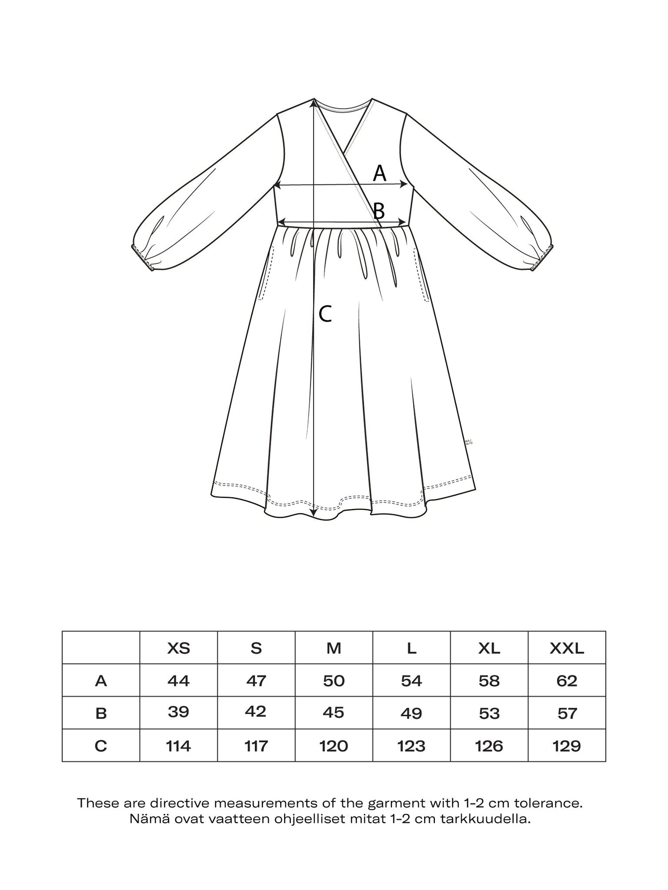Tässä pitkähihaisessa mekossa on kauniit pussimaiset hihat ja vyötäröltä alaspäin levenevä helma. Mekko menee paljaiden säärien kanssa, ja kelien viiletessä alle sujahtaa niin sukkahousut kuin housutkin. Pue sekä arjen että vapaa-ajan menoihin, ja stailaa sopivaksi myös pikkujoulukauteen!