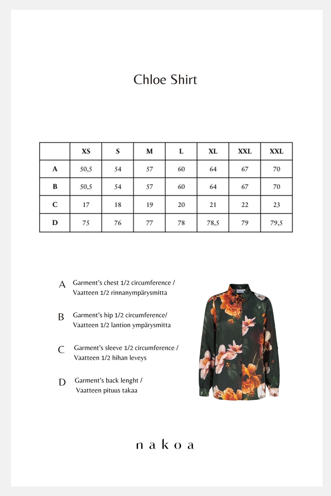 Chloe Shirt laskeutuu kauniisti varmistaen rennon mukavuuden jokaiseen päivään. Muotolaskokset ja leikkaukset tuovat ryhdikkyyttä paitaan. Kauluspaidan ajaton malli ja materiaalin vaivaton, kestävä materiaali tekevät paidasta pitkäikäisen ja monikäyttöisen valinnan. Pue niin arkeen kuin juhlaan!