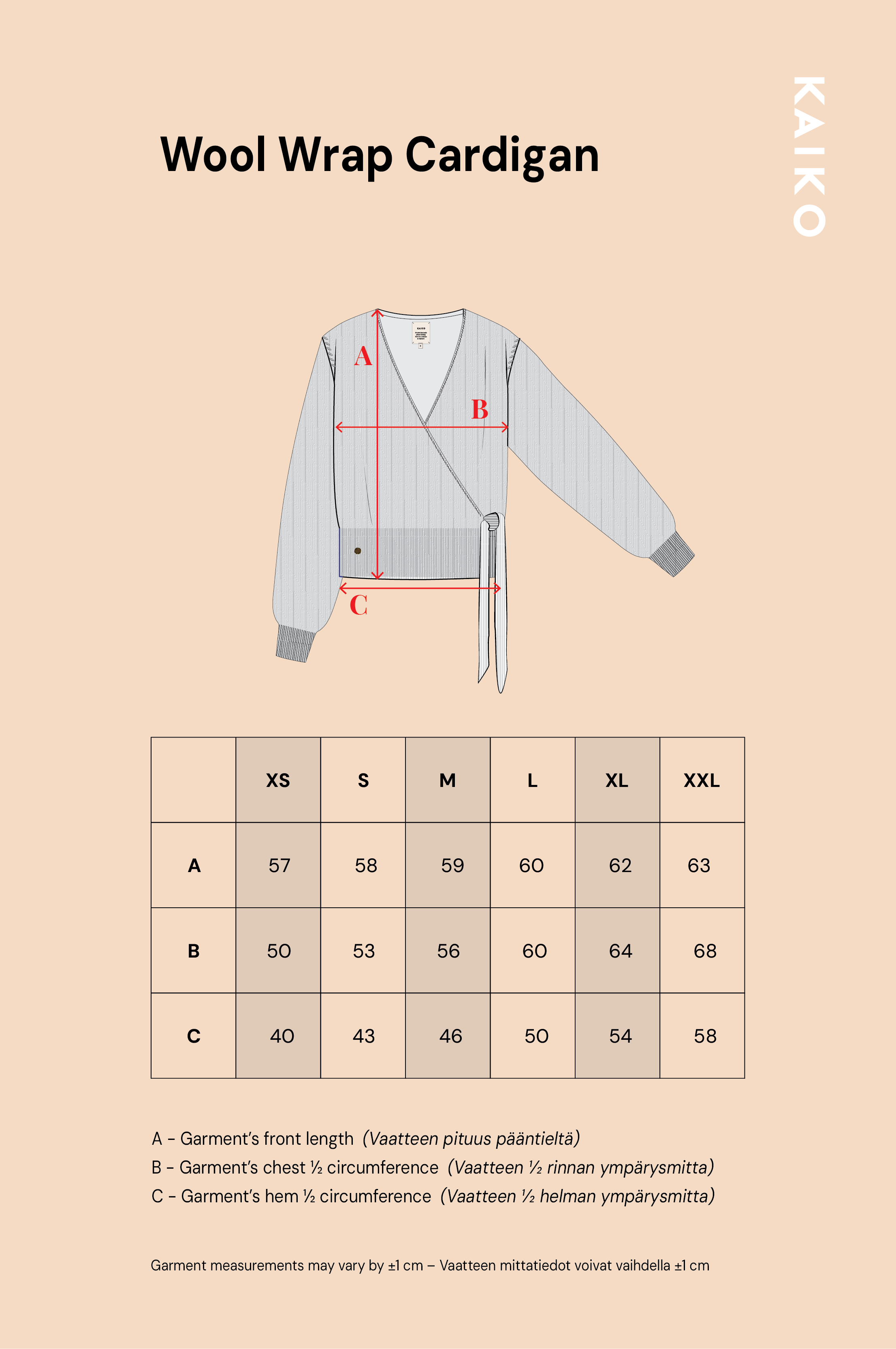 Kokotaulukon mitat ovat vartalon ympärysmittoja senttimetreinä. Vertaa omia mittojasi taulukon suuntaa-antaviin mittoihin. Huomioithan, että tuotteissa on erilaisia väljyyksiä. Vaatteita tilattaessa on hyvä huomioida, että mittanauhaa käyttämällä varmistat vaatteen sopivuuden ja vältyt turhilta palautuksilta.