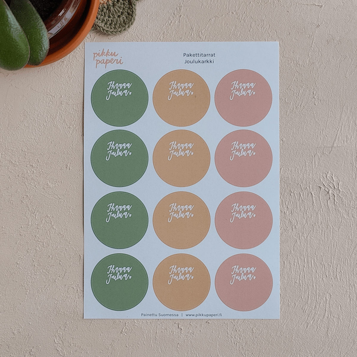 Pikku paperi -merkin Joulukarkki pakettitarra-arkki.